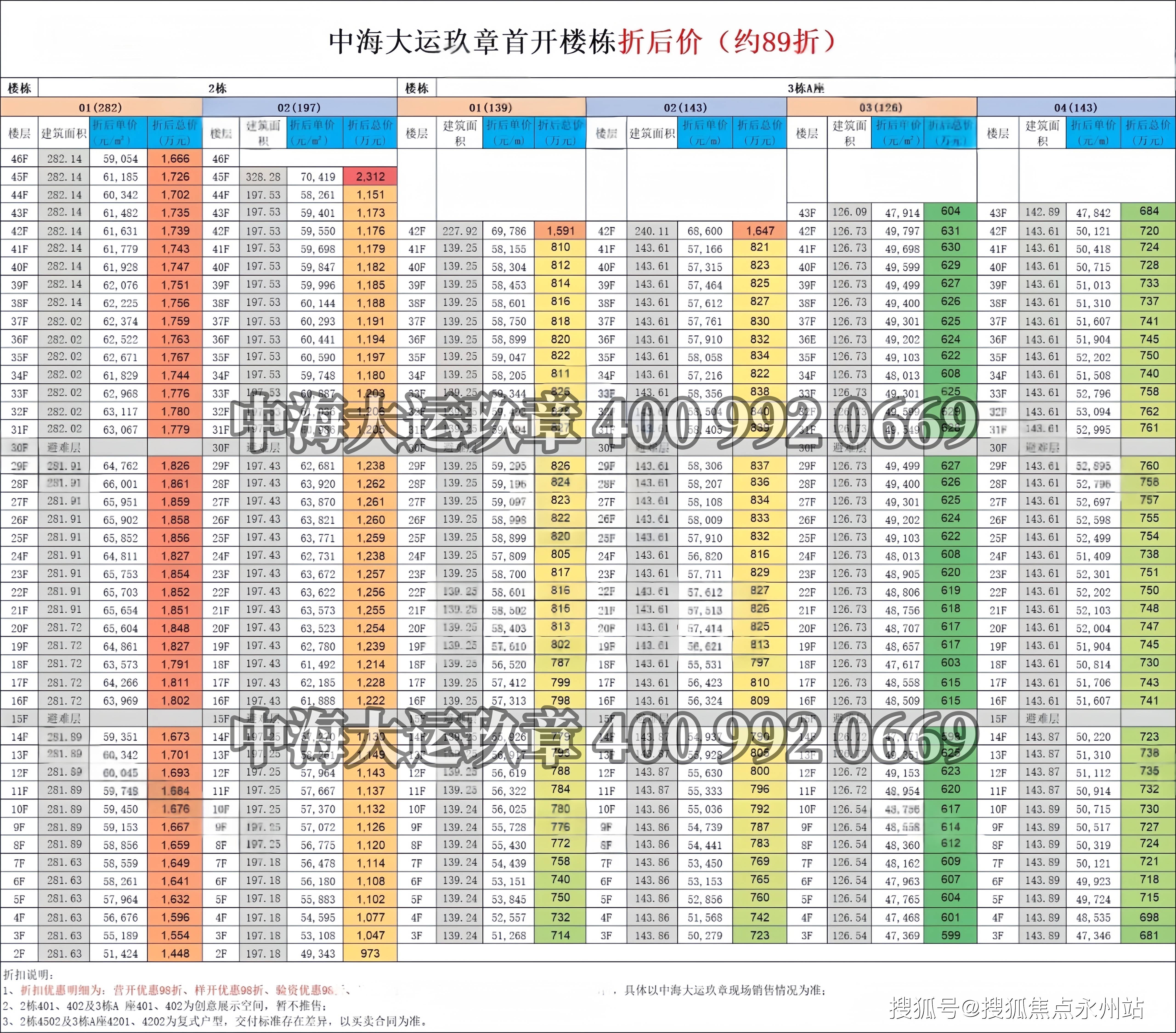 湖景单位(16-32 层)单价5.64-5.85万/㎡,客厅及主卧直面大运湖景,阳台连通次卧形成约12米景观面。